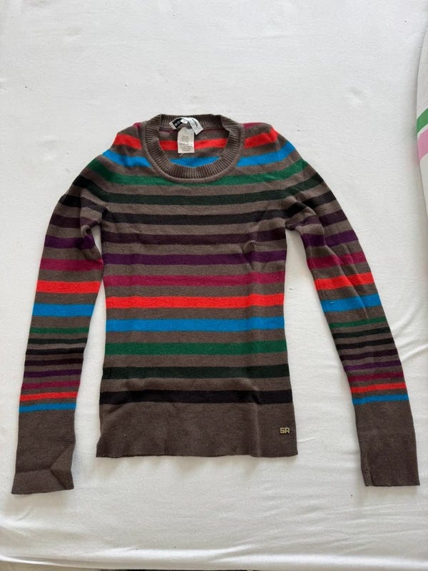 Secondhand websites are filled with her iconic knits, like this cashmere number: