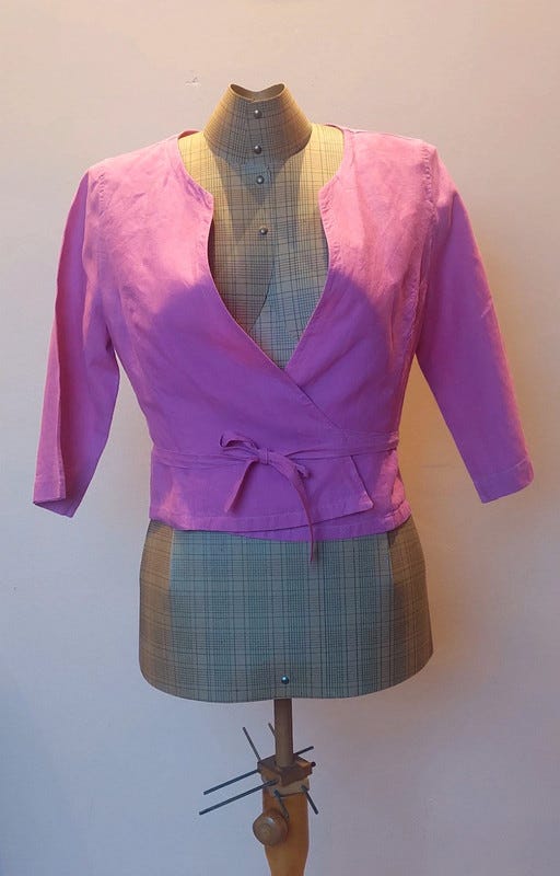 Looking for vintage Georges Rech will get you cute shirts like this pink wrap number: