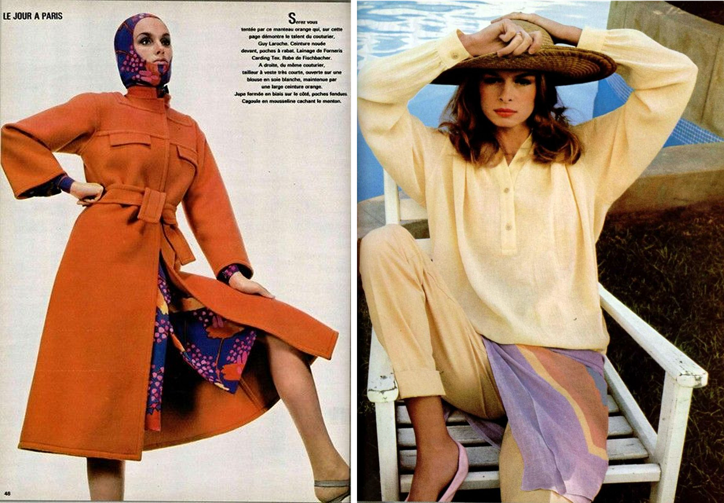 The 1960s was the rise and boom of ready-to-wear brands, including Cacharel. The designs by Corinne Sarrut gained popularity quickly and were adopted by icons Jane Birkin and Brigitte Bardot.