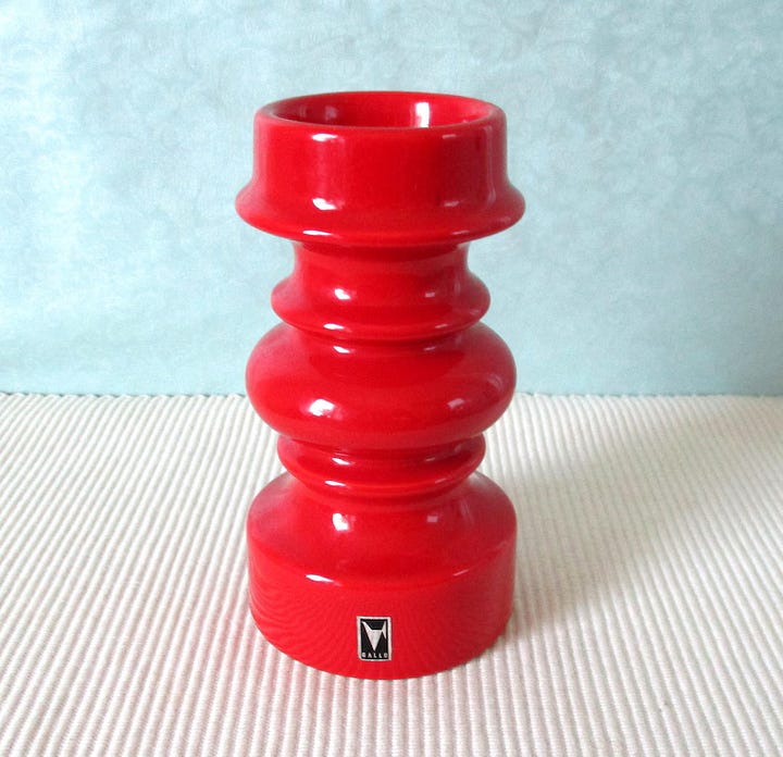 IKEA is currently selling seventies-inspired vases. So why not go for actual vintage options? I love this red one and this orange one.