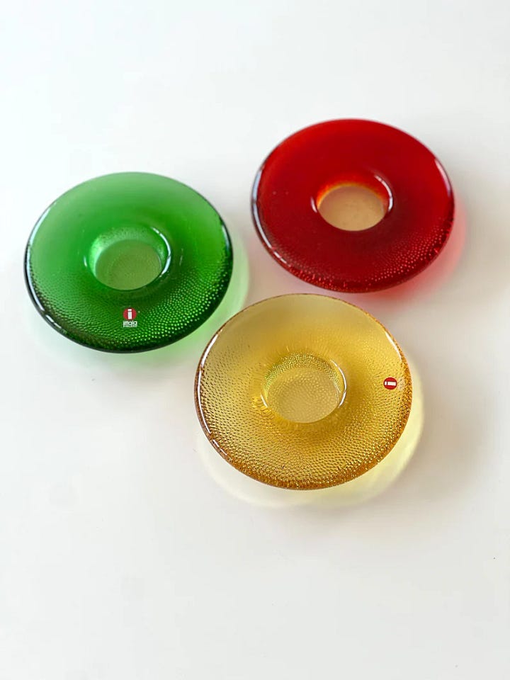 One to hold your taper candles, and a colorful vintage Iittala Nappi holder for your tea-light candles.