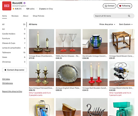 My main criteria is: local and selling vintage/hand-picked items. I’ve had too many bad shipping cost surprises and some disappointing buys from “handmade” shops that were maybe (probably) drop shipping.
