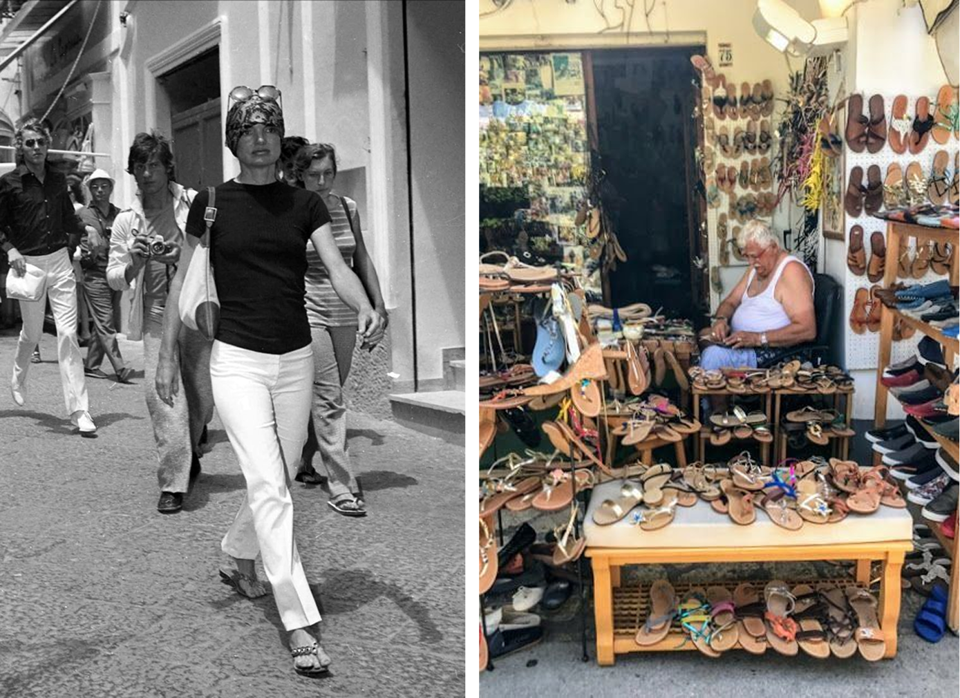Celebrities like Jackie Kennedy and Brigitte Bardot would vacation there, often spotted with these now iconic sandals.