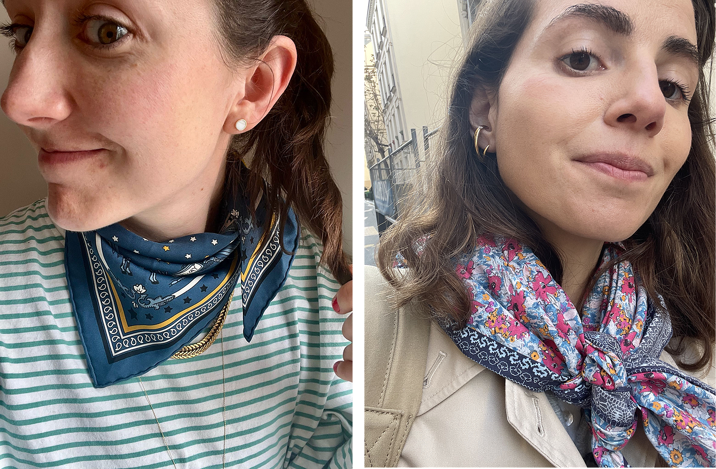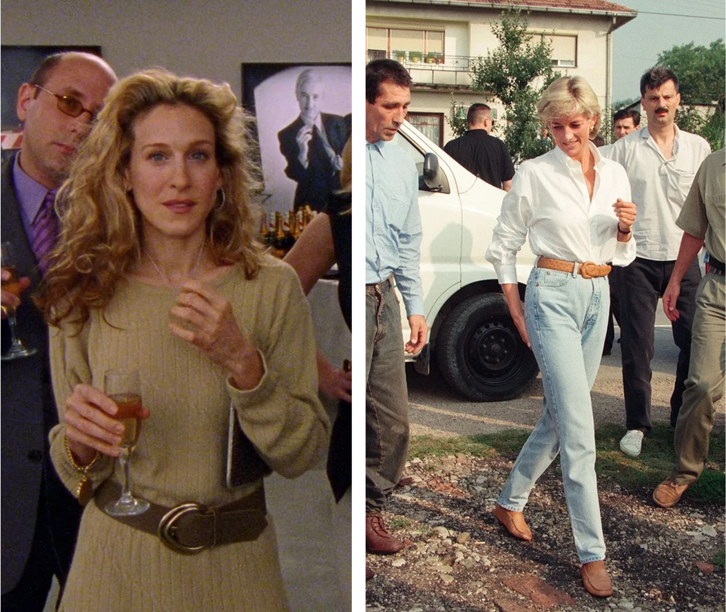are queens of scarves. I rarely see them without those bright and elegant touches to their outfits:And finally, Carrie and Lady Di reminding us that sometimes all an outfit needs is a good belt: