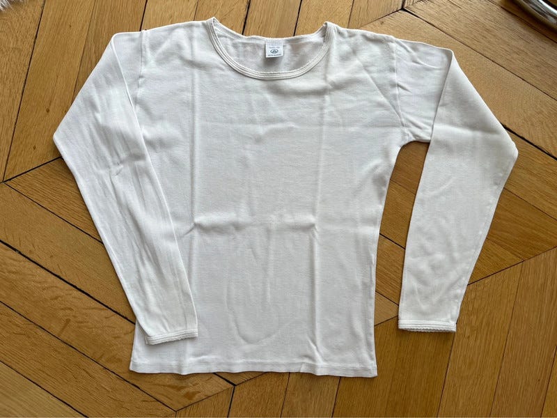 Fun fact: Petit Bateau was a kids and teenager brand since its establishment in 1920 until 1990 when Claudia Schiffer walked the runway wearing a Petit Bateau white tee under her Chanel suit.