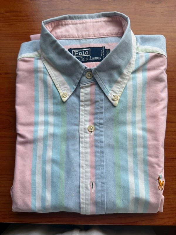 Ralph Lauren’s very first line, launched in 1967 in NYC. Shirts from this line in the 1980s-1990s are great secondhand finds—especially their “Made in U.S.A.” or “Made in Hong Kong” oxfords.