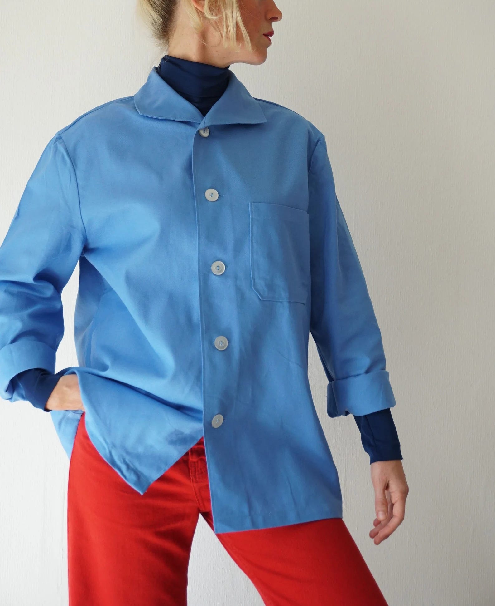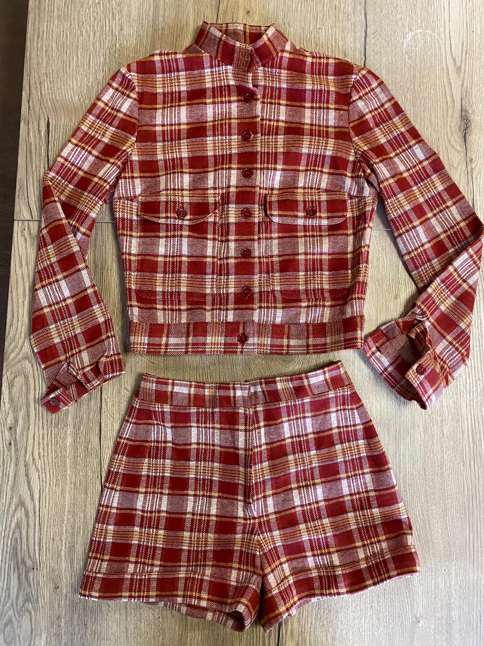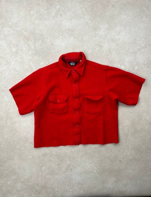 Or this bright red short-sleeved number that’s vintage Woolrich: