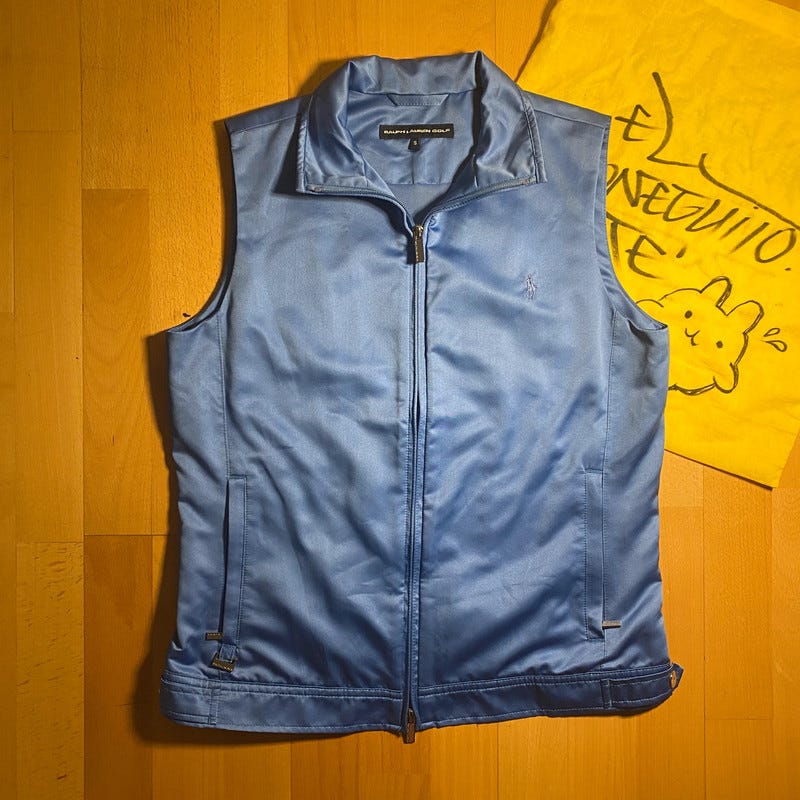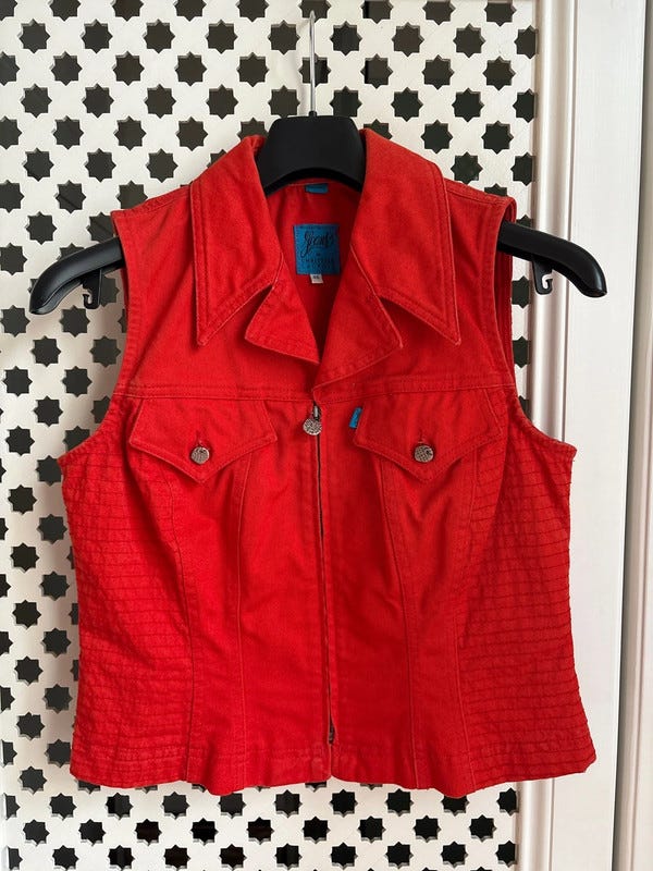 There are some very fun non-sporty secondhand options to find a sleeveless layer for style, (not so much for warmth):