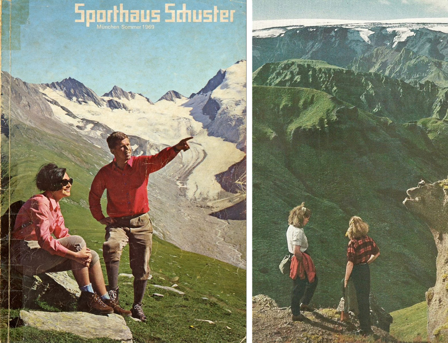 Often associated with lumberjacks, flannel shirts have been hiking gear since the early 1900s. A famous Italian guide from the Dolomites, Angelo Dibona, even praised the new flannel sportswear technology of the time for its “elastic warmth” (pictured below, on the left).